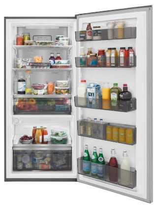 Upgrade to an eye-catching built-in look with our beautiful single-door refrigerator and customize your kitchen with an optional trim kit and the ability to place refrigerator and freezer together or apart based on your kitchen layout.